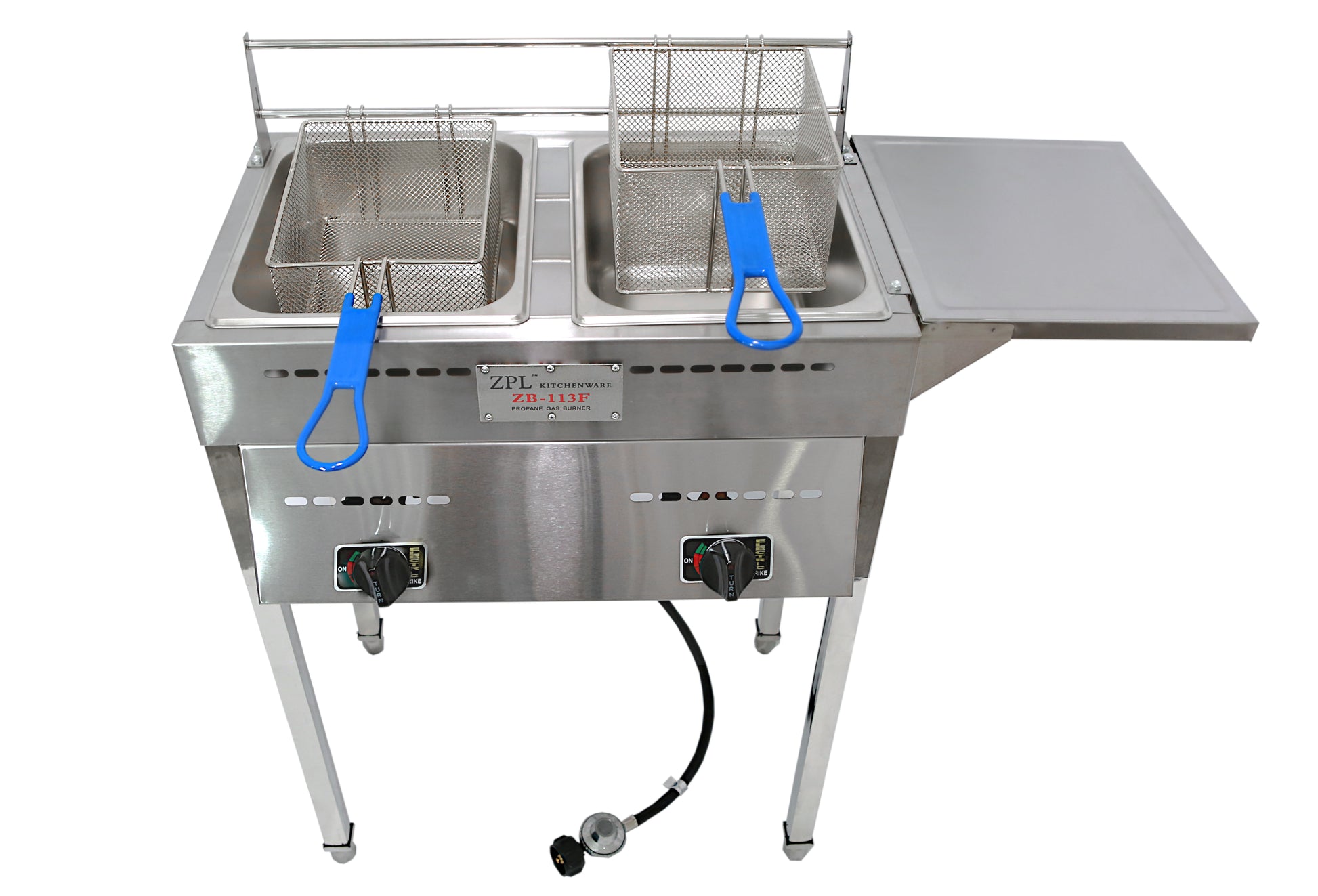 ZB-113F: Outdoor Stainless Steel Double Propane Fryer with Table